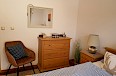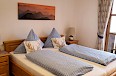 Schlafzimmer mit Doppelbett und weiterem Balkonzugang.