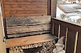 Küchenzeile (Geschirrspüler, Mikrowelle etc.) Essgruppe und Couchgruppe (Couch ausziehbar).