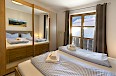 - Schlafzimmer mit erhöhtem Doppelbett und ausklappbarem Schlafsessel.