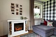 Im Wohnzimmer können Sie gemütliche Stunden am Elektrokamin verbringen.
